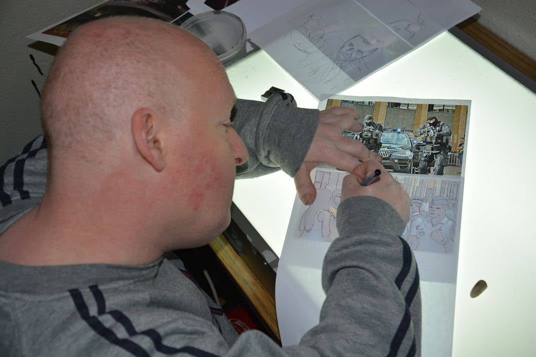 Werk: Illustrator en striptekenaar, actief vanuit zijn kamer thuis in Kortrijk-Heule.